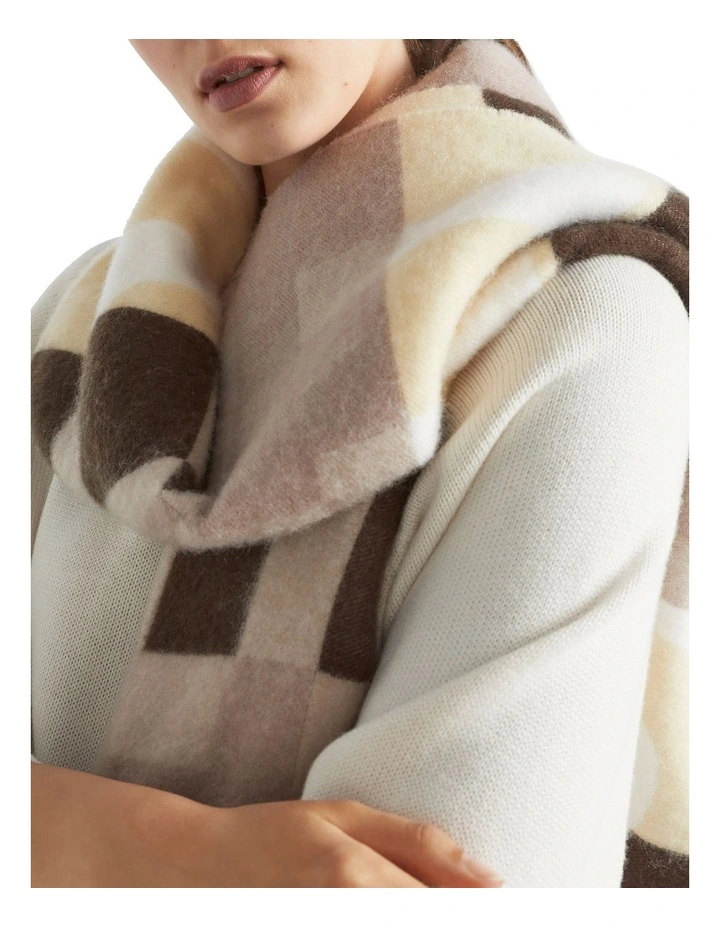 Crafted from a warm wool blend, this scarf features a colourblock pattern made up of the Seed Heritage logo. It is generously sized and easy to style.