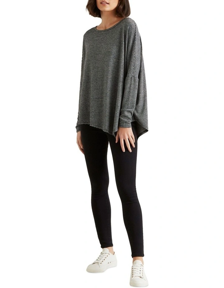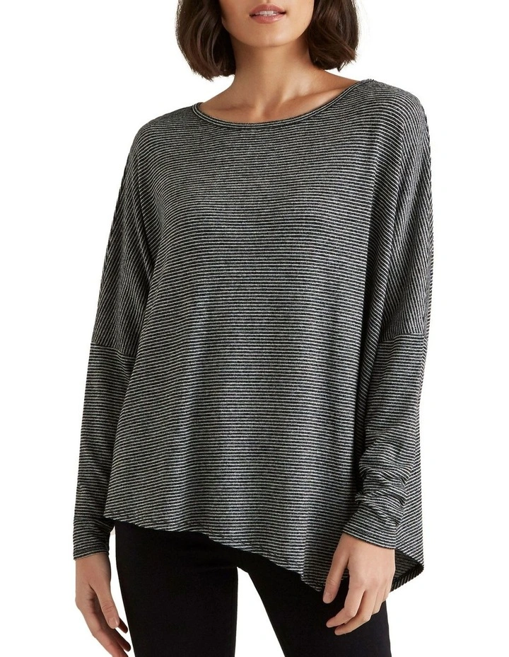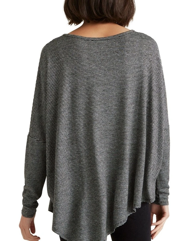 This loungewear staple is made from a soft modal blend with a hint of stretch, and drapes around the body in a relaxed fit dipping into an asymmetric hem. With fitted sleeves and a striped pattern this is a winter essential.