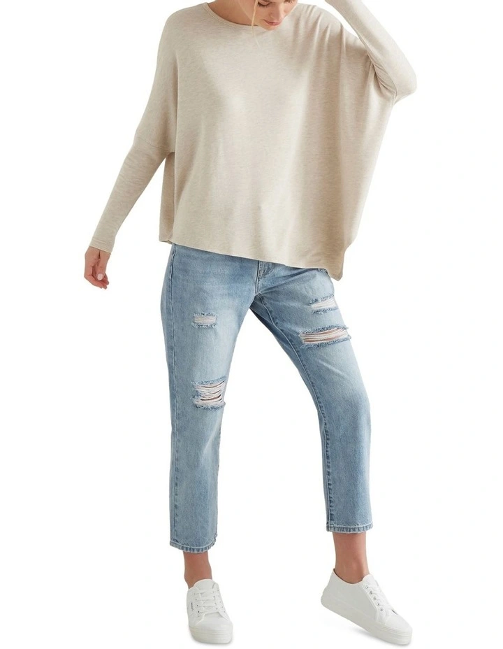This loungewear staple is made from a soft modal blend material with a hint of stretch, and drapes around the body in a relaxed fit dipping into an asymmetric hem. Slim fitting sleeves keep you warm and the wide, scooped neck sits flatteringly at the collarbone.
