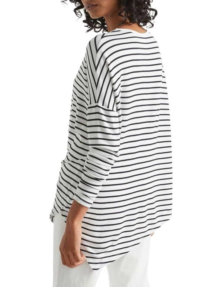 This lightweight staple is made from a soft modal blend material with a hint of stretch, and drapes around the body in a relaxed fit dipping into an asymmetric hem. Slim fitting sleeves keep you warm and the wide, scooped neck sits flatteringly at the collarbone.