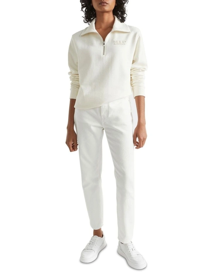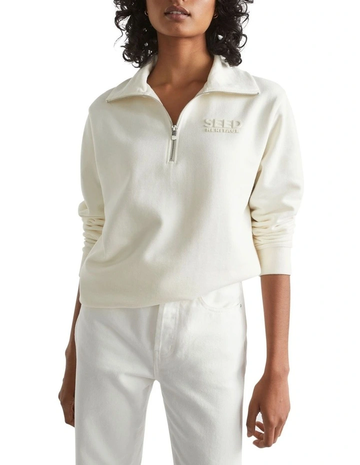 Made from 100% cotton with a midweight feel, this relaxed sweater is a trans-seasonal essential. The half-zip neckline opens out to a wide collar, and the sweater has ribbed trims. A subtle logo detail is embossed on the chest, and the sweater has a boxy fit. By choosing our cotton products, you are supporting our investment in the Better Cotton mission.
