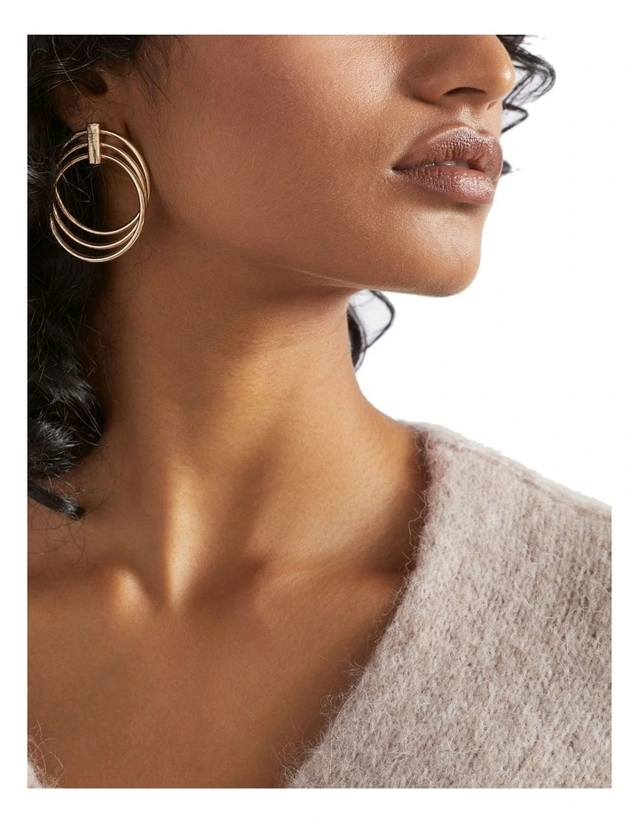Add a little something extra to your look with these layered hoop earrings. Featuring three stacked rings on a stud backing, the earrings have a luxe, elegant look.
