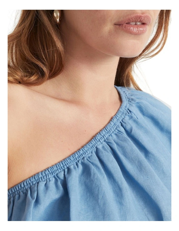 Refined yet casual, this top deserves a spot in your summer wardrobe. With a one-shoulder neckline and a single puff sleeve, it offers a new silhouette, ideal for long lunches. Crafted from beautiful premium linen.
