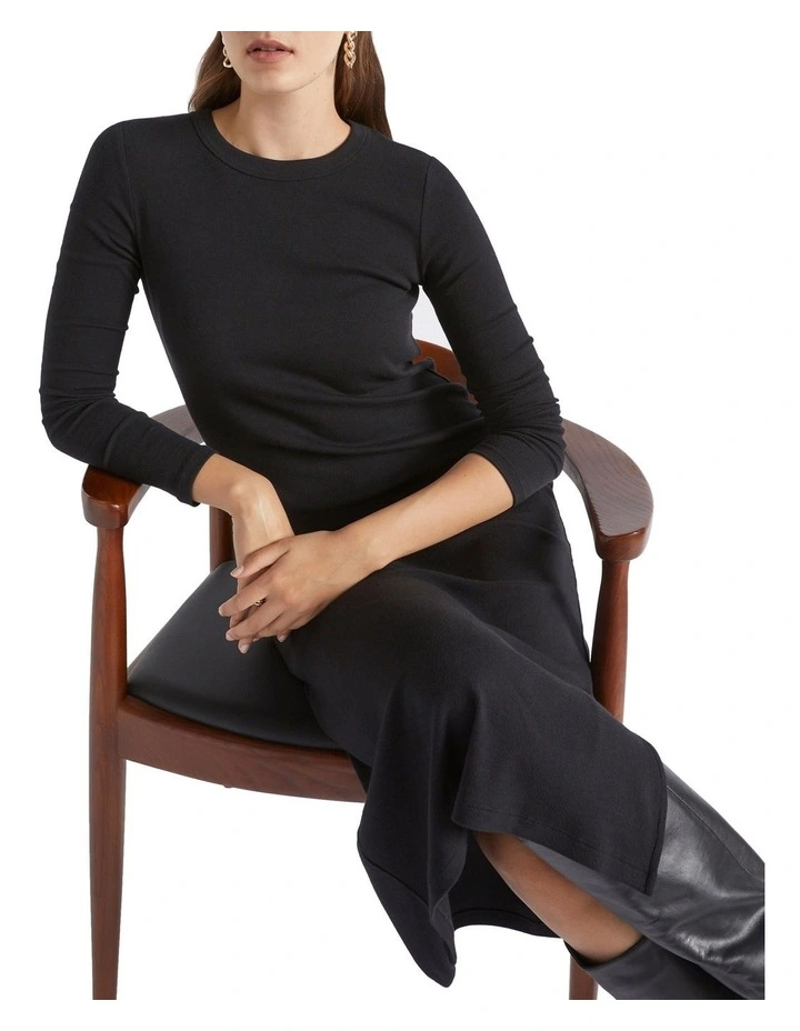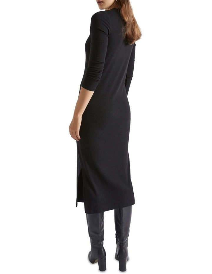 Crafted from a soft, stretchy blend with modal and cotton, this dress is a wardrobe essential for the cooler months. It is cut close to the body for a flattering shape, and features a crew neck and long sleeves. The dress falls to a midi length and is easy to style for the working week or days off.