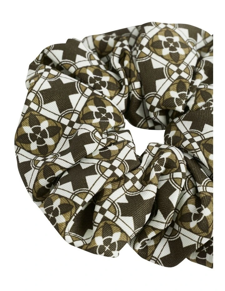 Tie your hair back in style with this geo-print scrunchie. Designed to match our apparel, it has an elastic interior and a print fabric outer.