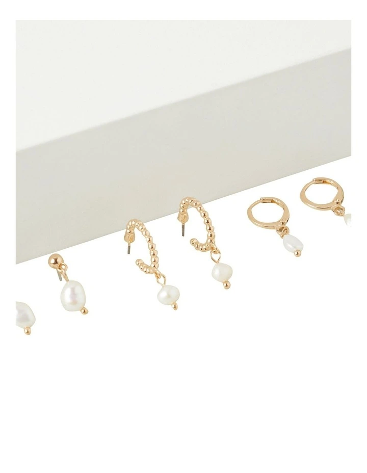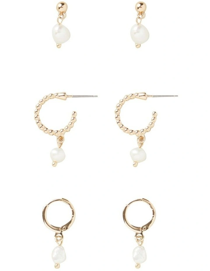 This beautiful trio of pearl earrings are perfect for adding a classic touch of elegance to any look. Crafted from a quality gold look alloy, the set features a stacked circle hoop design, a stud design and a closed hoop design all finished with a pearl drop charm.