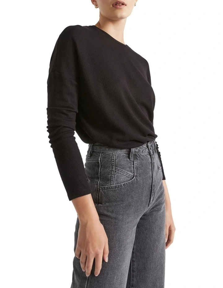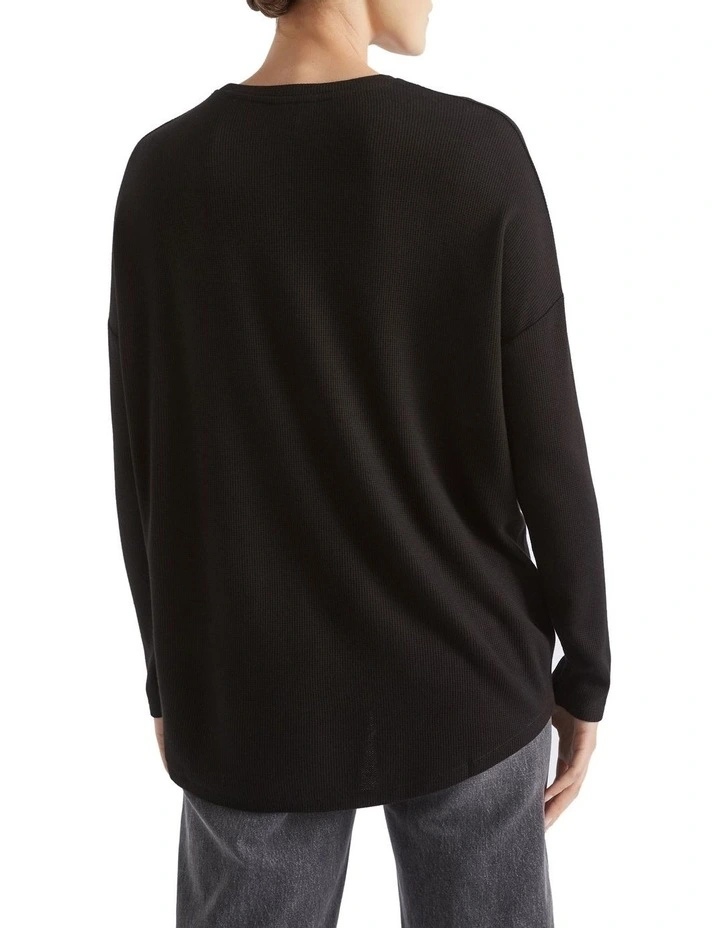 In a supersoft micro waffle fabric, this top has a comfortable fit and plenty of stretch. It features long sleeves and a low hem at the rear. Small splits finish the look.