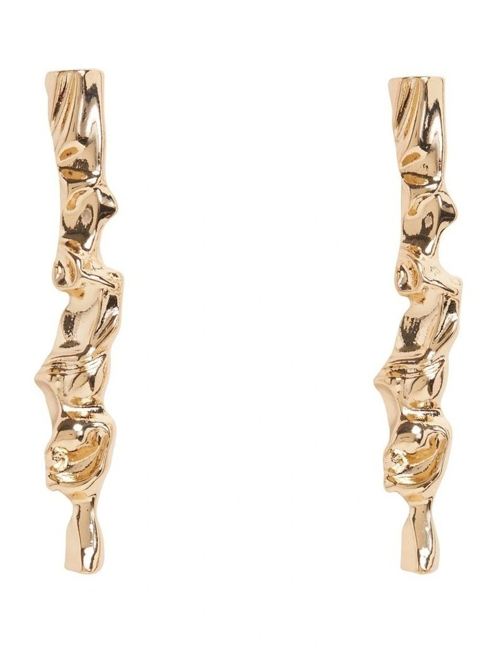 These stud earrings dangle from the ear in a modern, molten shape. They close with a stud backing. Pair with the matching layered necklace.