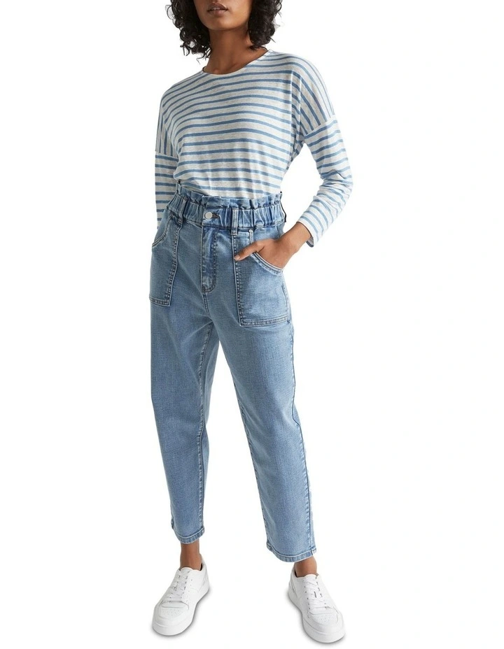 With a paperbag waist with frill trim, these jeans add a retro touch to your casual looks. They feature patch pockets and a slightly tapered leg, and are crafted from premium stretch denim. By choosing our cotton products, you are supporting our investment in the Better Cotton mission.