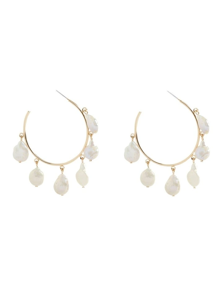 These earrings make a statement, with natural pearls dotting the curve of an open-style hoop. They fasten with a stud backing.