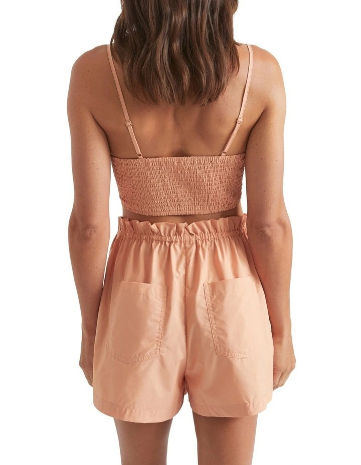 With slim straps and a cropped length, this top is a must for hot days. Crafted from a smooth cotton poplin, it features a centre cutout and a shirred back. Pair with matching shorts or layer up with a shirt.
