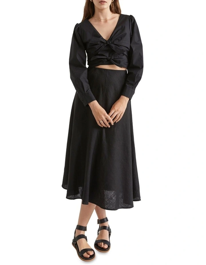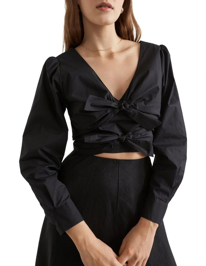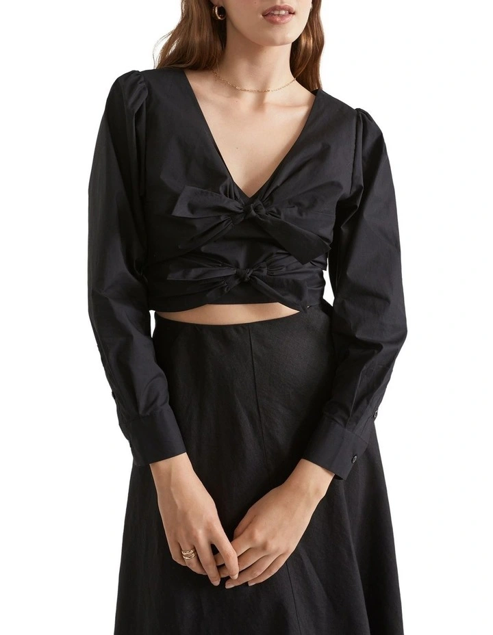 This cotton poplin top features two ties at the front, exposing a little skin while still feeling secure and easy to wear. Puffed sleeves balance the look, with a cropped finish.