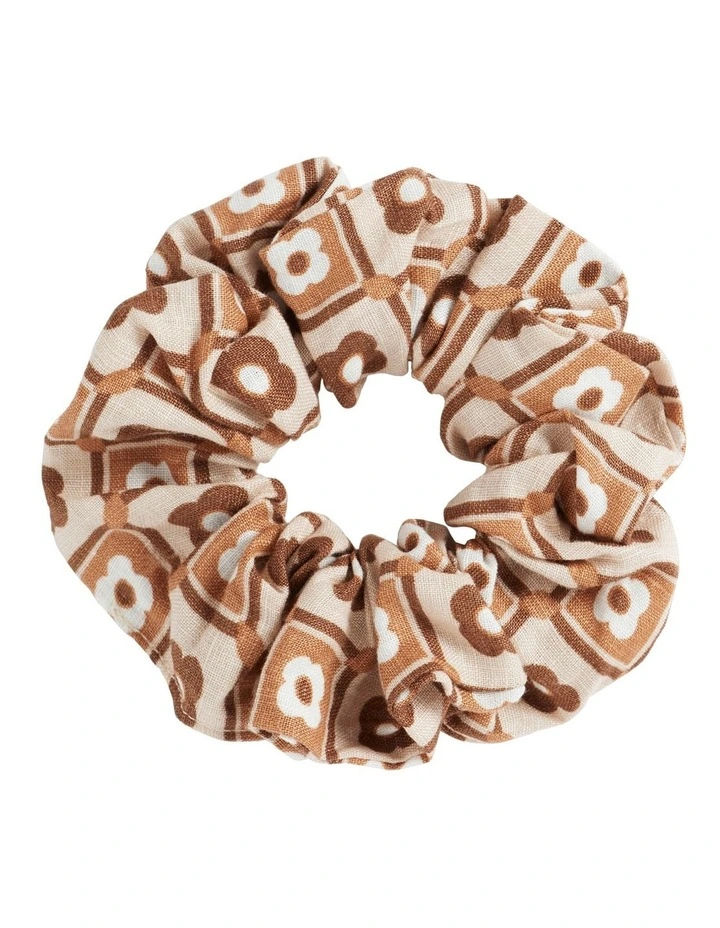 Finish your summer looks with this linen scrunchie, featuring our favourite retro print.