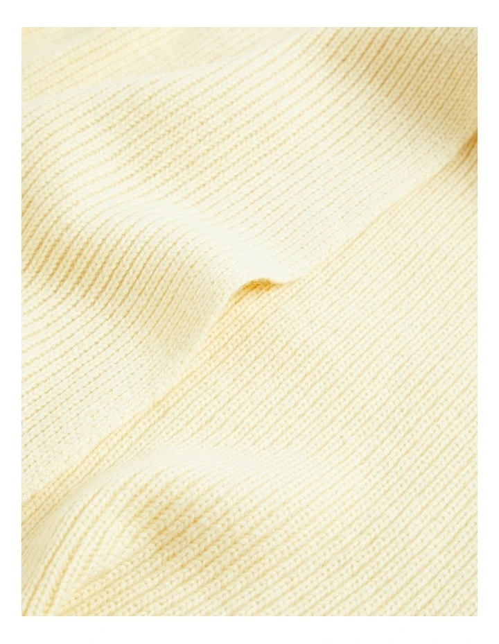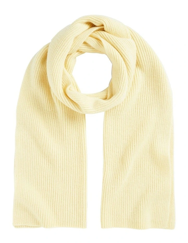 Lightweight and warm, this scarf is crafted from a soft blend including wool, cotton, and cashmere. It has a ribbed knit construction and is generously sized. An essential piece for transeasonal dressing.