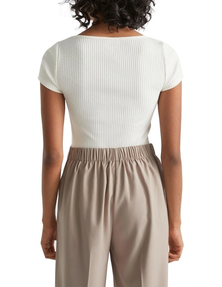 This tee is a classic with a twist, thanks to its flattering sweetheart neckline. Cut close to the body, it is crafted from a stretch blend fabric in a rib knit. Easy to style for the working week or more casual looks.
