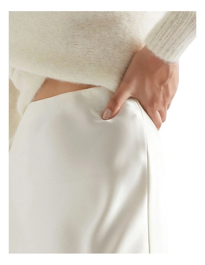 Our classic satin slip skirt gets an update with this longer, more fluid style. With an elasticated waist, it is comfortable and easy to wear. Falling to a maxi length, the skirt skims over the body and pairs beautifully with knits.