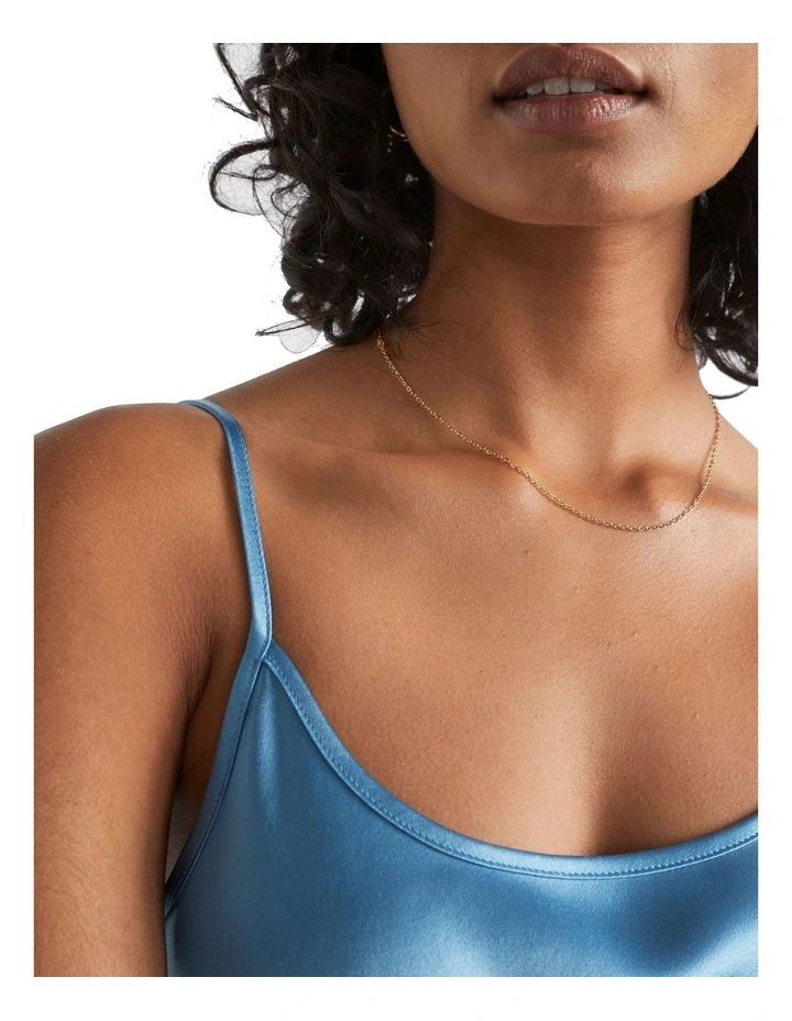 This classic slip dress is a wardrobe essential, flattering and easy to style. Slim straps lead into a fluid, body-skimming shape, finishing at a midi length. The dress has a satin feel.