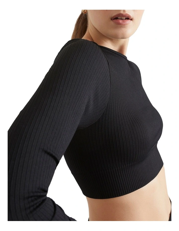 With a crew neck, cropped cut and long sleeves, this top is an ideal wardrobe building block. Its seamless construction makes it comfortable to wear, and it fits close to the body.