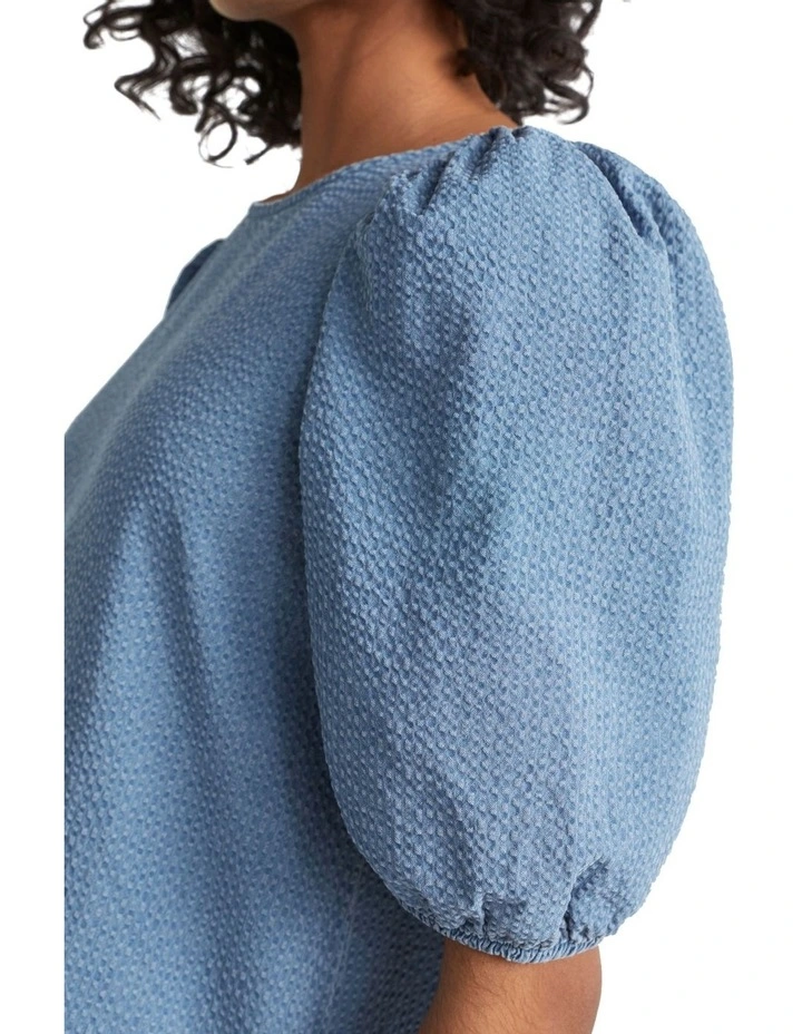This mini dress is a throw-on-and-go classic. Crafted from a lightweight seersucker cotton, it features a dropped waist and tiered skirt, with puff sleeves to balance its length. By choosing our cotton products, you are supporting our investment in the Better Cotton mission.
