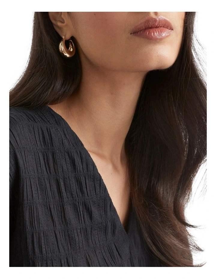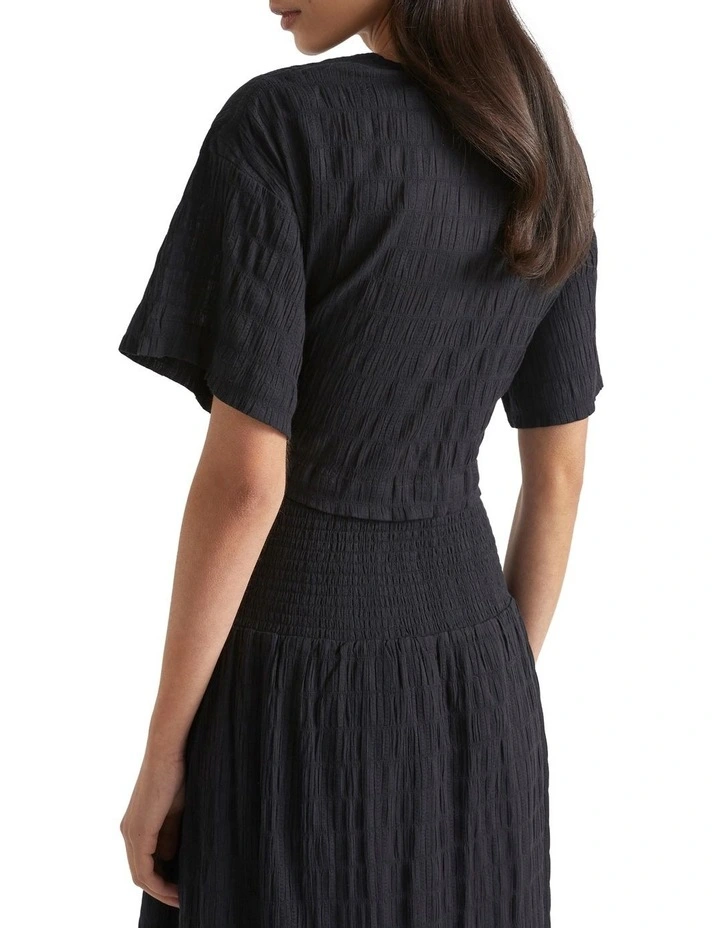 In a lightweight, semi-sheer stretch cotton with a check woven texture, this top is a must for long summer days. It features a flattering V neck and a twist detail at the front waist. By choosing our cotton products, you are supporting our investment in the Better Cotton mission.