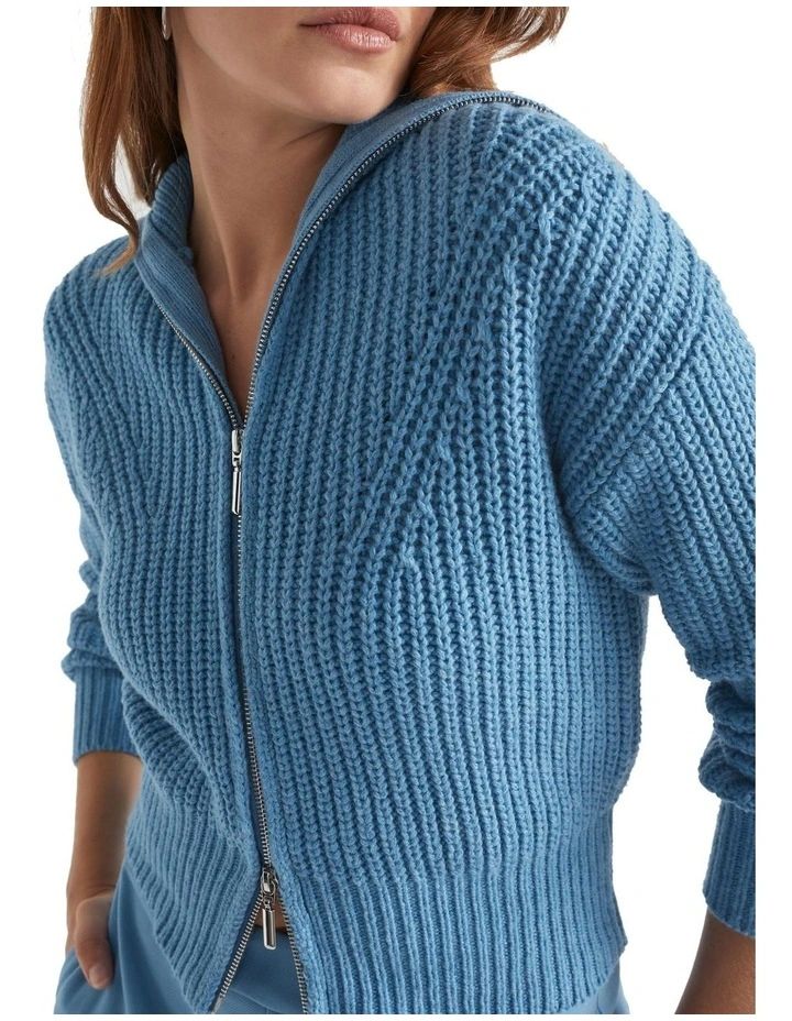 This zip-through cardigan has a retro feel thanks to its funnel neck and cable details. With full sleeves and ribbed trims, it is crafted from a cotton-rich stretch blend with wool. By choosing our cotton products, you are supporting our investment in the Better Cotton mission.